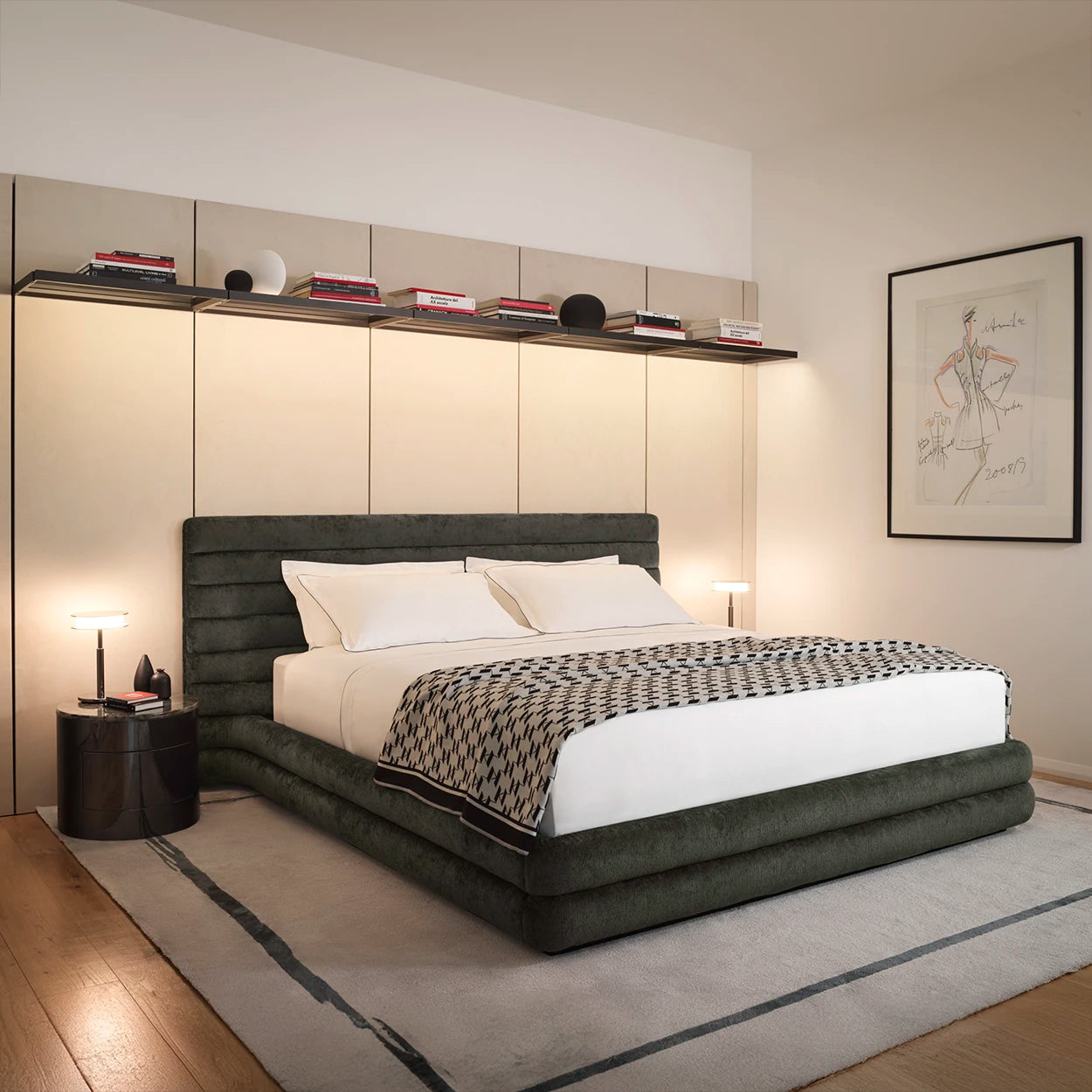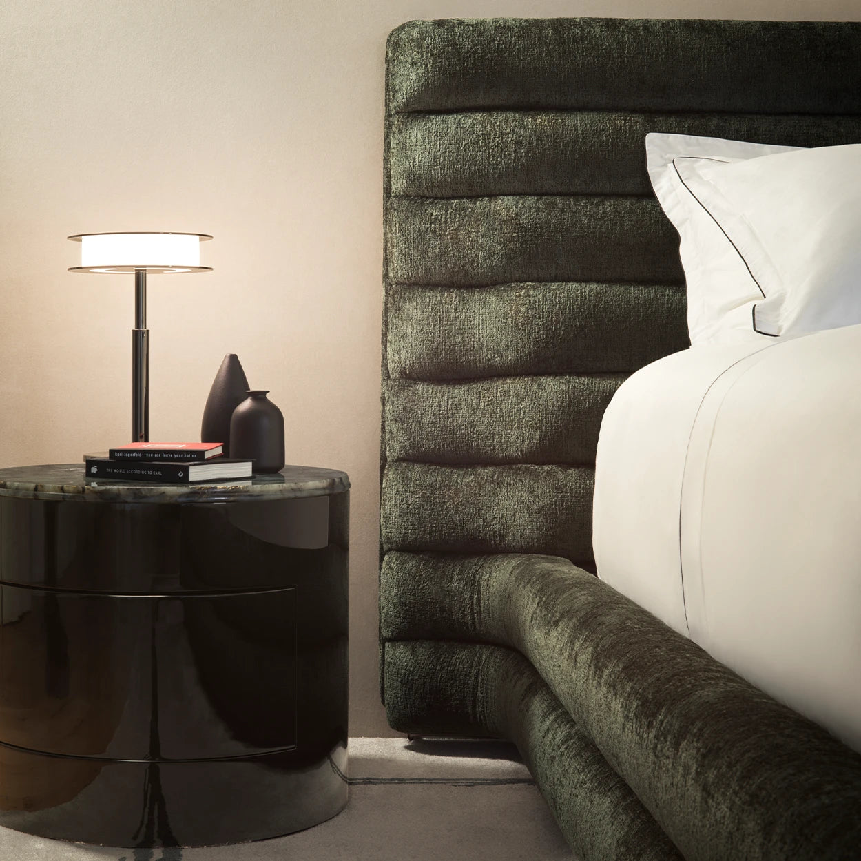 Rib stitches, curves and undulating shapes are all creative elements identified in Karl Lagerfeld’s sketches that have influenced each piece throughout the living, dining and bedroom sets. The WELLEN collection is a nod to the prominent presence of waves and the flowing lines that seamlessly meld form and function.